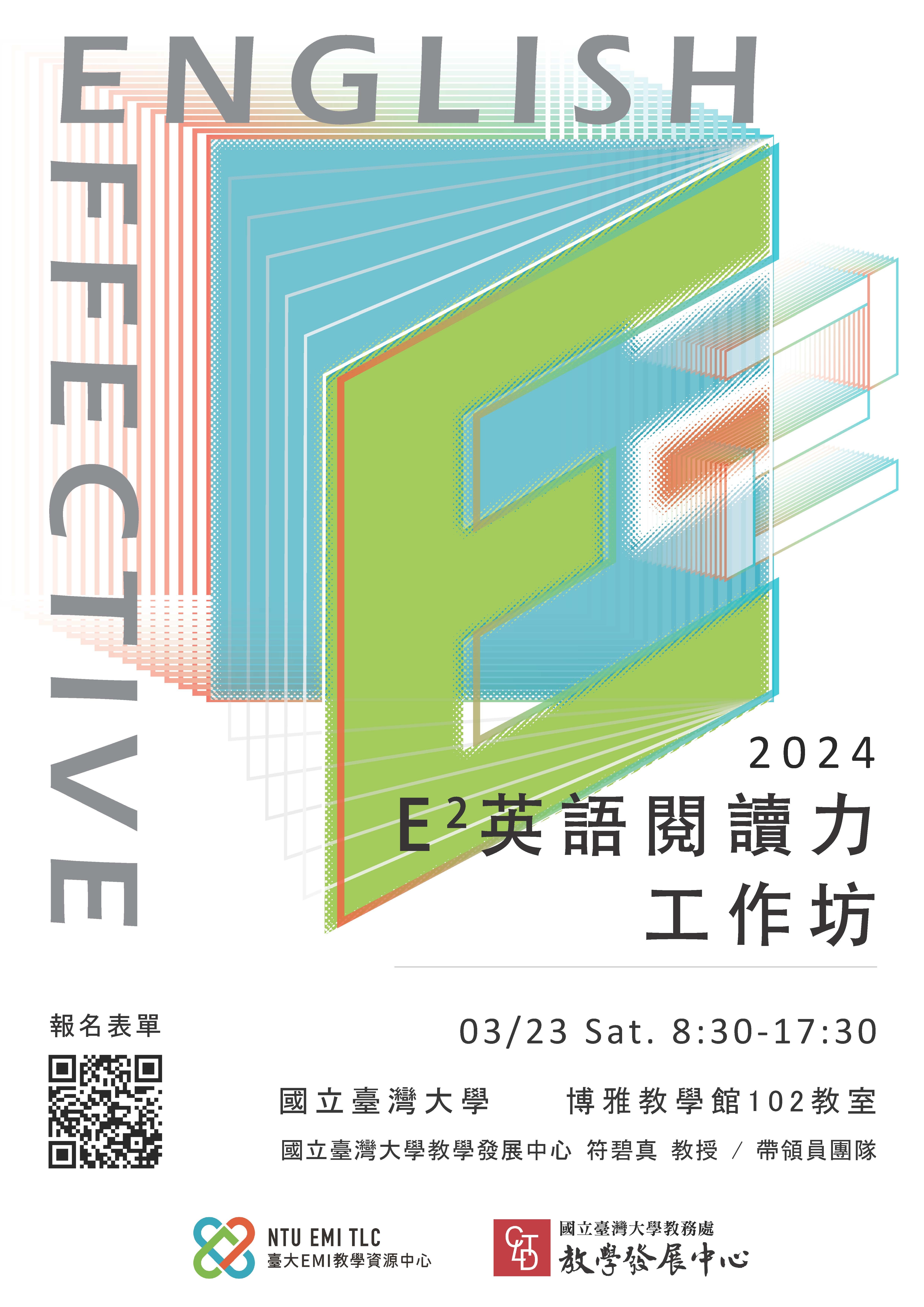臺大EMI教學資源中心將於3月23日(六)舉辦的E²英語閱讀力工作坊,目前已開放報名,報名截止日為3/17 (日)。